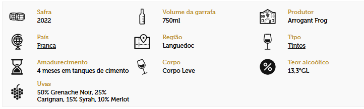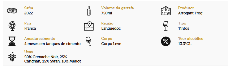 Sirva entre 14-16°C para realçar toda a sua riqueza e frescor. Descubra o charme único do Arrogant Frog Tutti Frutti Rouge e torne seus momentos ainda mais especiais!