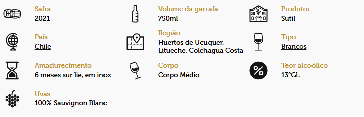 O Vinho Branco Sauvignon Blanc Sutil 750ml é ideal para quem busca frescor e leveza. Apresenta coloração amarelo-pálido com aromas marcantes de frutas cítricas e notas herbáceas sutis. No paladar, destaca-se pela acidez equilibrada, corpo leve e final suave.