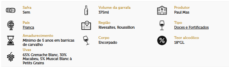 O Vinho Château Lauriga Rivesaltes é a escolha perfeita para quem busca um vinho doce e encorpado com tradição francesa. Com sua coloração âmbar intensa, apresenta aromas ricos de frutas secas, mel e especiarias. No paladar, destaca-se pela doçura equilibrada e final persistente.