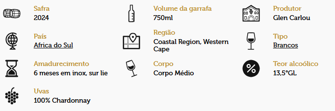 O Vinho Glen Carlou Chardonnay é uma escolha refinada para os amantes de vinhos brancos elegantes. Com aromas delicados de frutas tropicais e toques sutis de baunilha, oferece um paladar fresco e equilibrado, com final suave. Ideal para harmonizar com frutos do mar, aves e queijos leves. Descubra a sofisticação e a qualidade deste Chardonnay sul-africano, perfeito para ocasiões especiais.