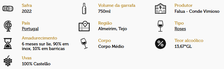 O Vinho Rosé Conde Vimioso é perfeito para quem busca um vinho leve e delicado. Com aromas intensos de frutas vermelhas frescas e um toque floral suave, oferece um paladar refrescante e suave. Ideal para acompanhar saladas, frutos do mar e pratos leves, este rosé traz frescor e elegância para seus momentos especiais. Aproveite cada taça com sabor e charme únicos!
