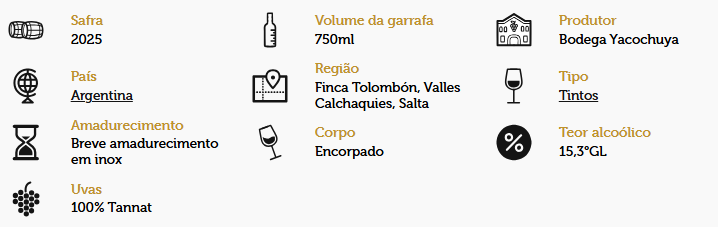 O Vinho Tannat Coquena se destaca por sua coloração intensa e aromas marcantes de frutas vermelhas maduras e toques de especiarias. No paladar, é encorpado, com taninos firmes e excelente equilíbrio, perfeito para acompanhar carnes vermelhas e queijos curados.